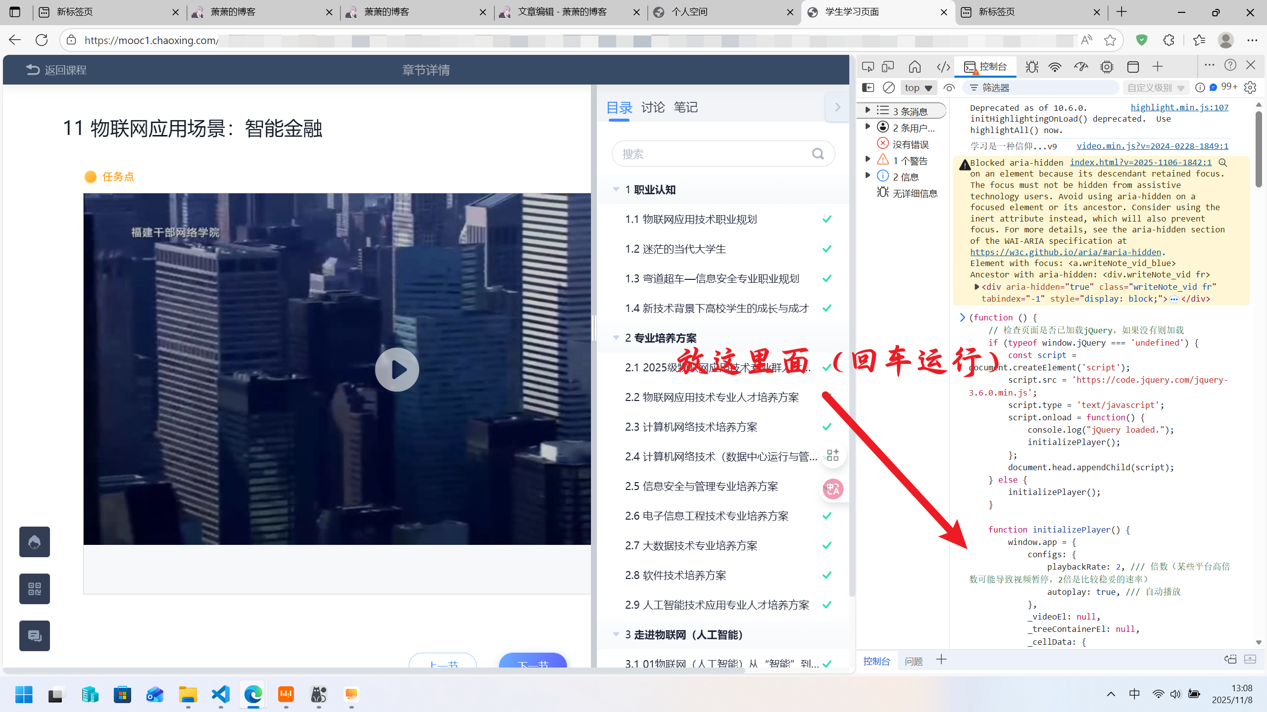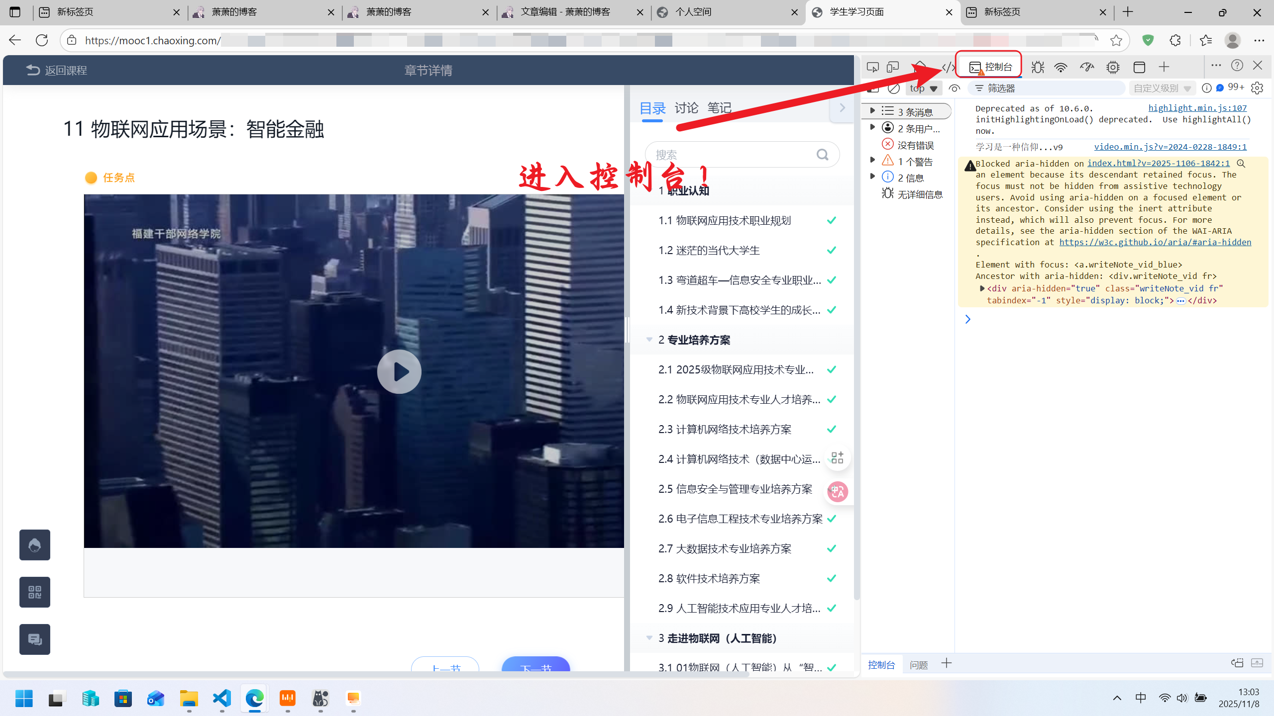 3.到需学习的课程后按F12进入开发者模式并进入控制台